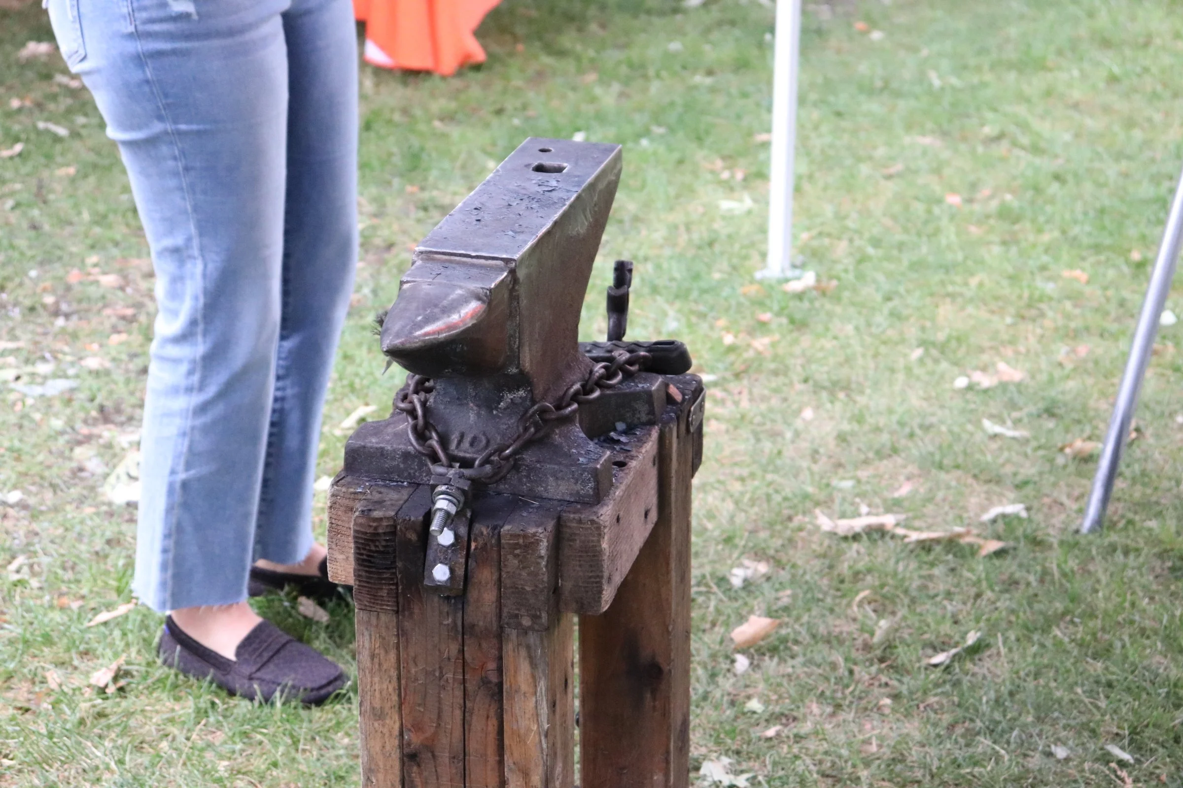 An iron anvil rests on display on the quad. Photo by James Ortiz.