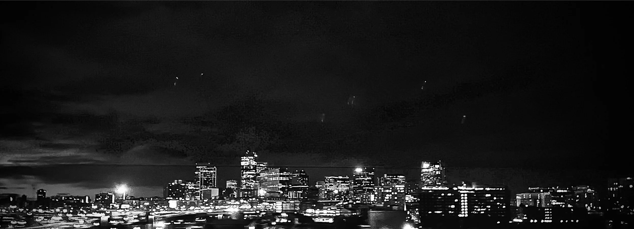 Downtown Denver’s lights shine through the dark. Photo by Alina Hussaini