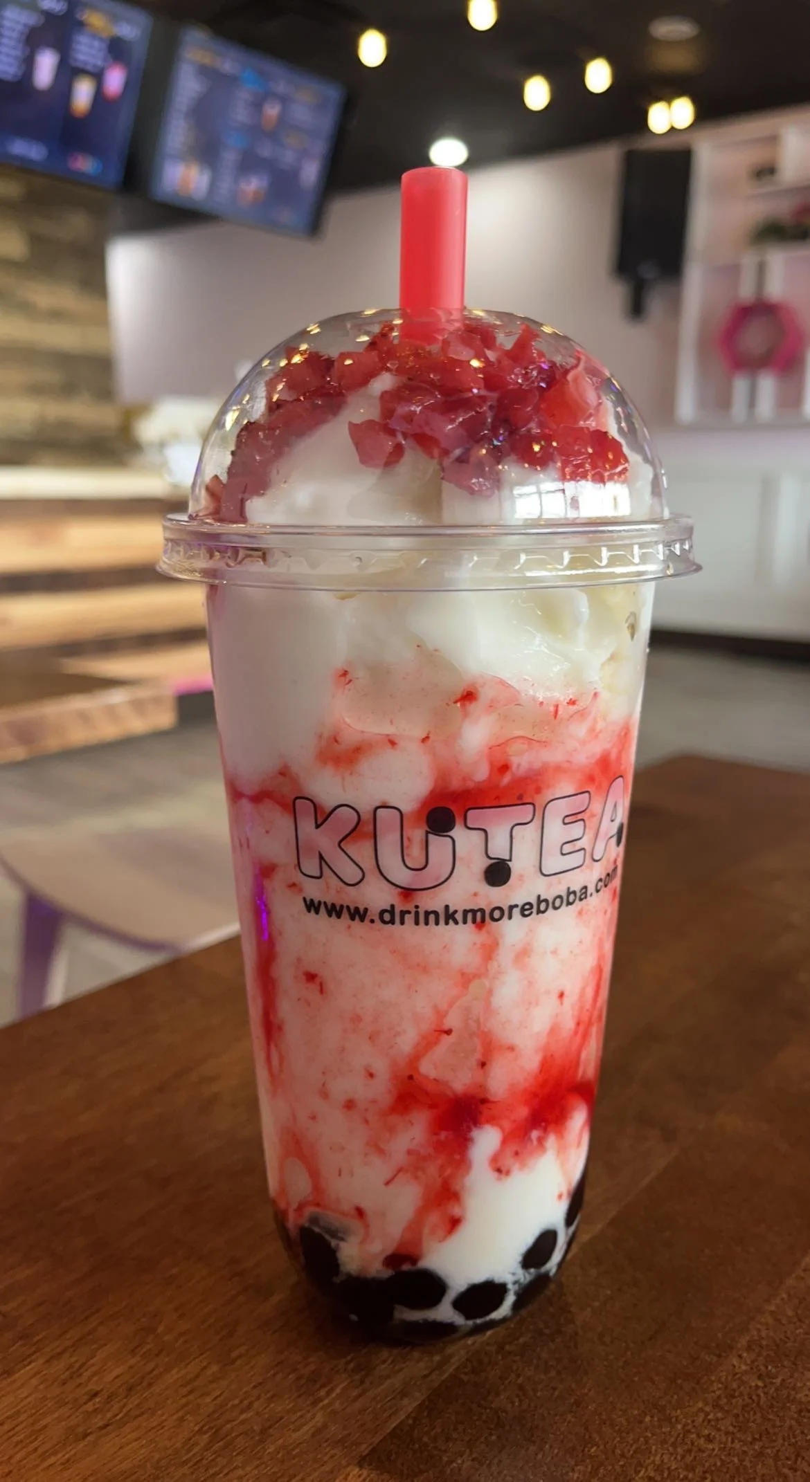 Kutea is the perfect spot to find good drinks inside of a store with a cute atmosphere. They have unique flavors such as the cream cheese smoothie collection, classic Vietnamese juices, and even a place to get a Vietnamese green waffle.
