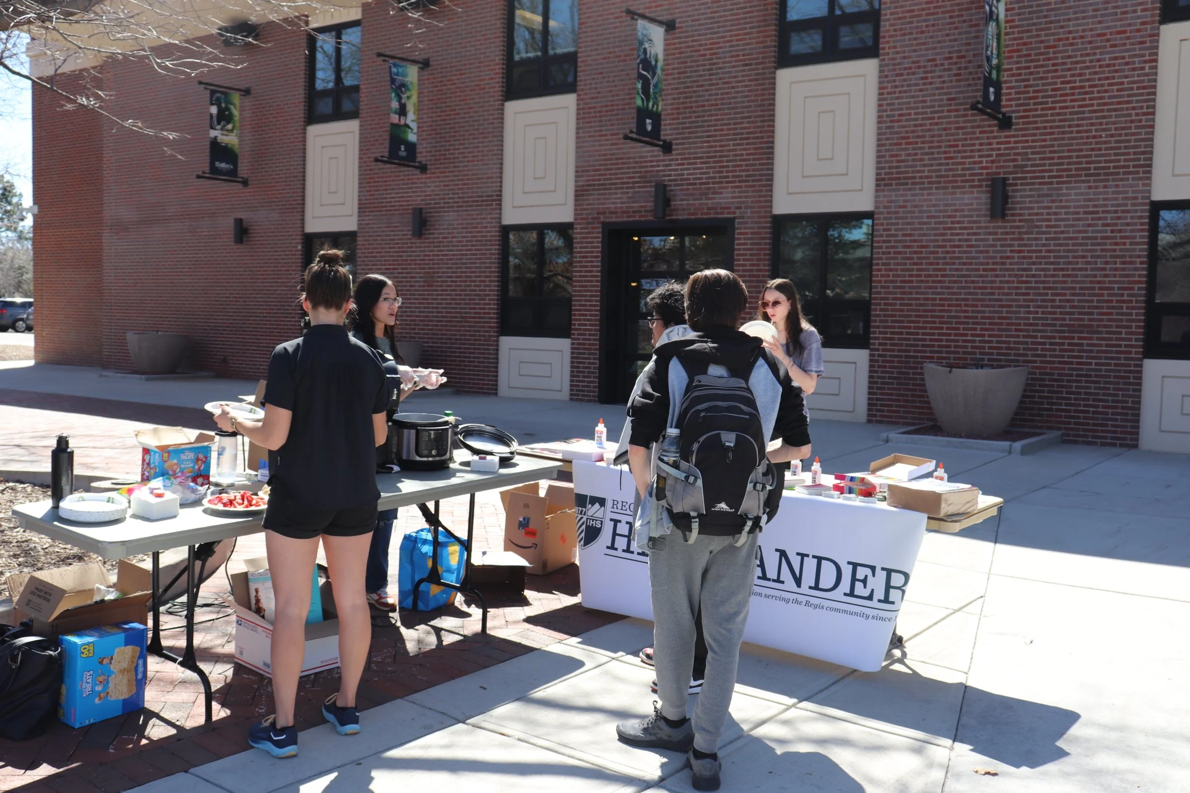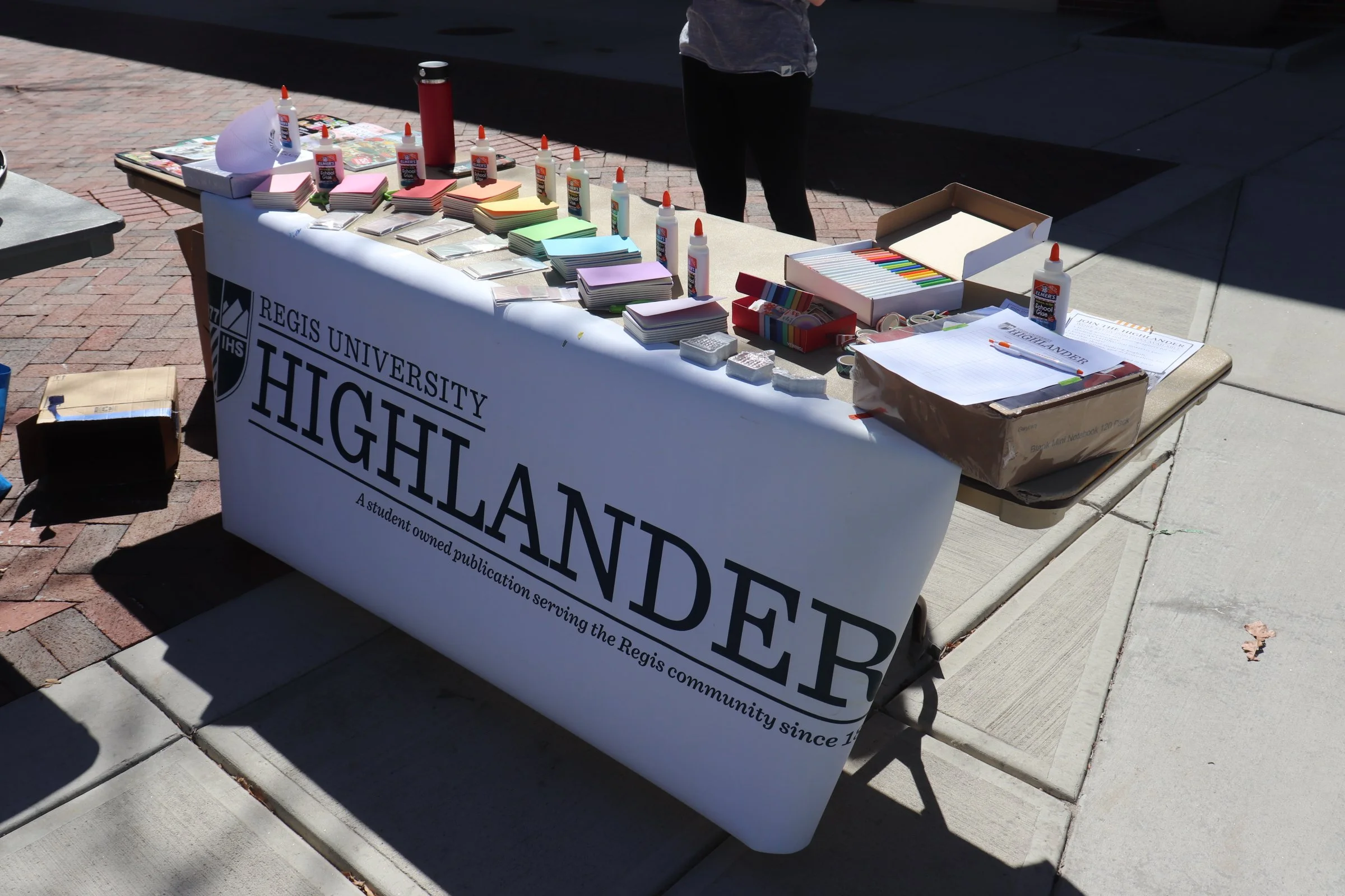 Earlier this semester, the Regis Highlander hosted Chocolate and Collages. An afternoon of fun activities where students could make their own journals and collage covers, all while enjoying delicious melted chocolate on strawberries, bananas, and marshmallows. It was a beautiful, sunny day.