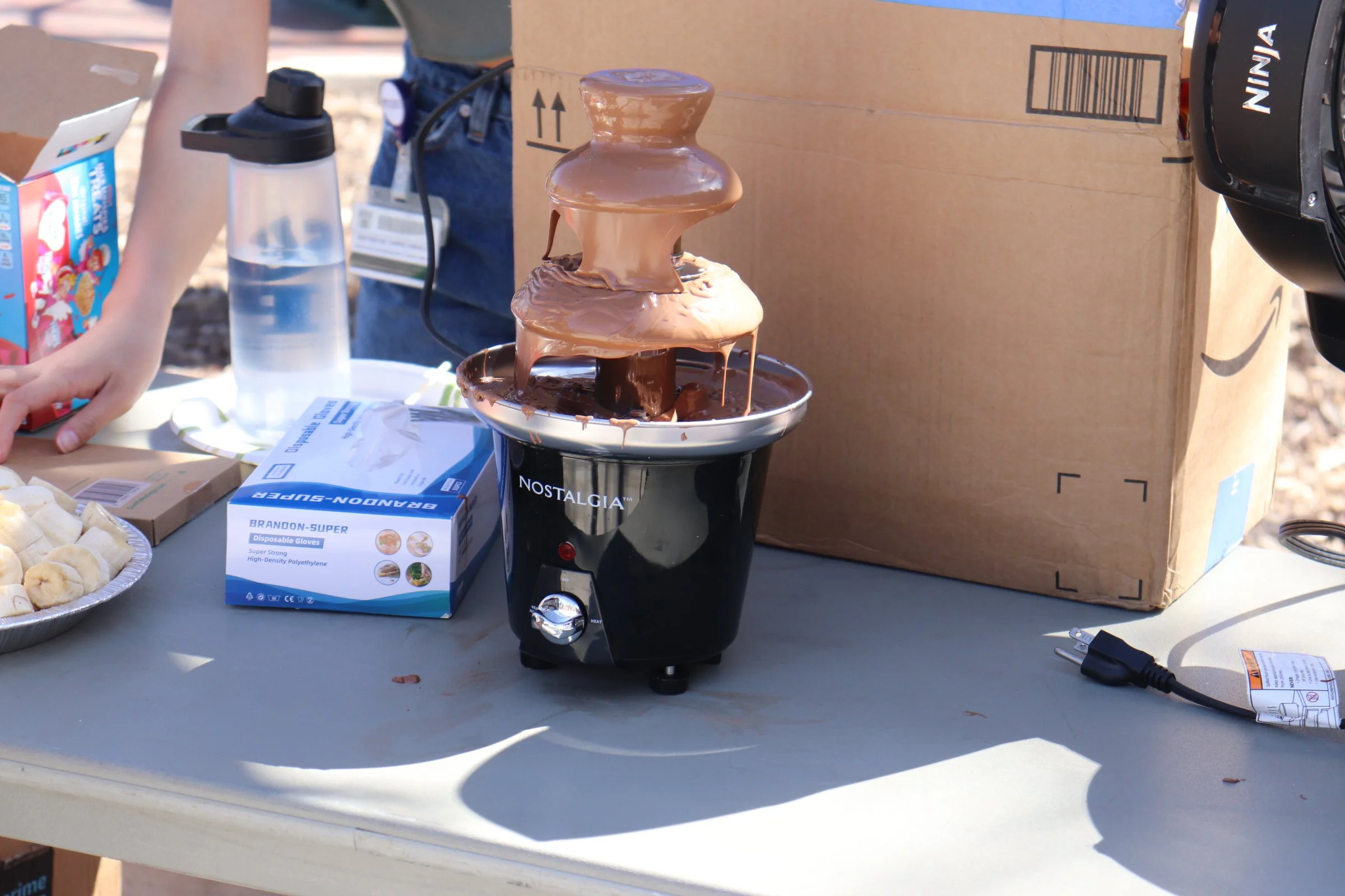 A chocolate fountain spins a gooey treat. Photo by James Ortiz