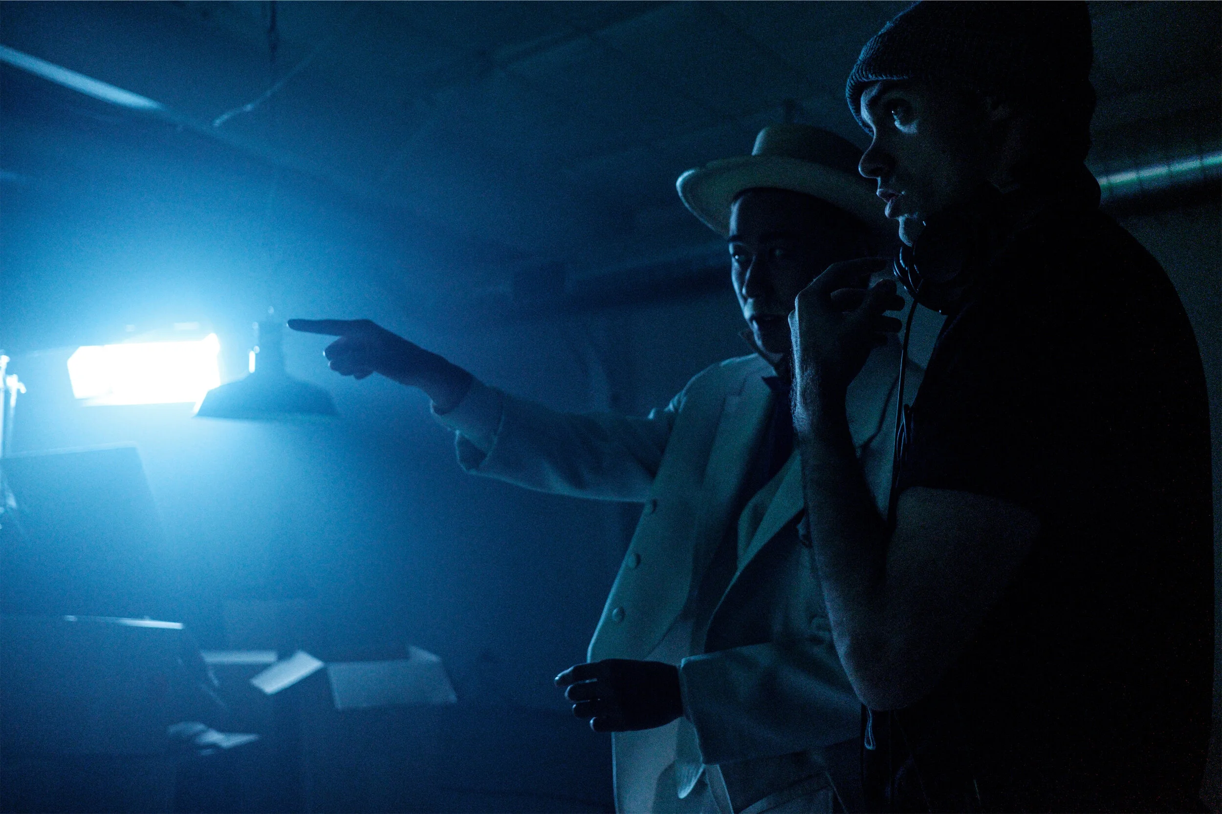 Director Jesse Stewart and actor Sam Li on the set of a Chinese miniseries.
