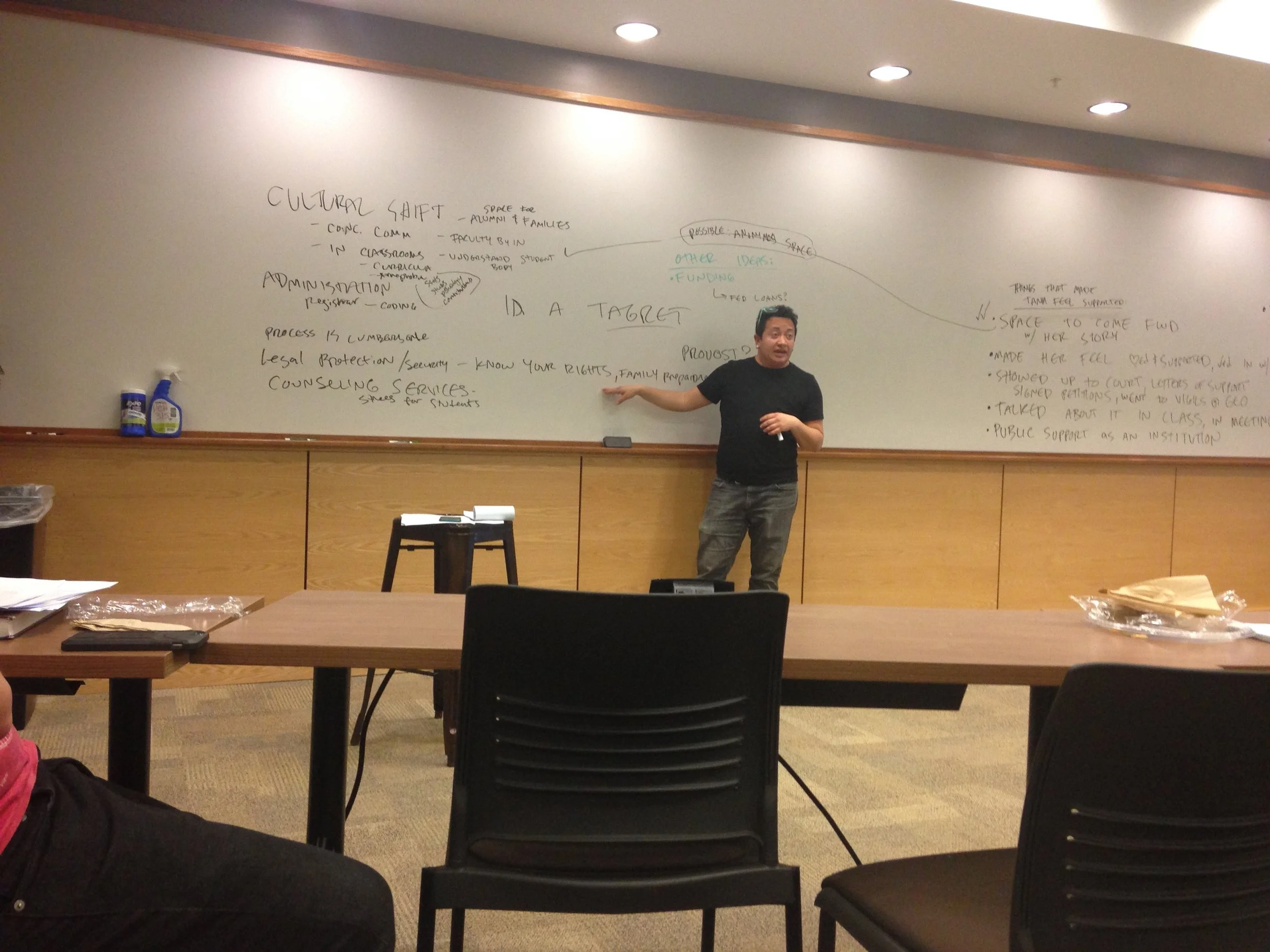 Garcia facilitated a group brainstorming session of tangible actions can be taken at Regis, as well as potential issues that Regis should address. The group expressed interest in changing the culture of Regis so that more undocumented students feel comfortable, making “Know Your Rights” resources and trainings available, and increasing conversations around immigrant rights in classrooms. Although Regis has decided against declaring itself as a sanctuary campus due to potential revocation of federal aid, the group discussed how we can cultivate the feeling of a sanctuary campus.