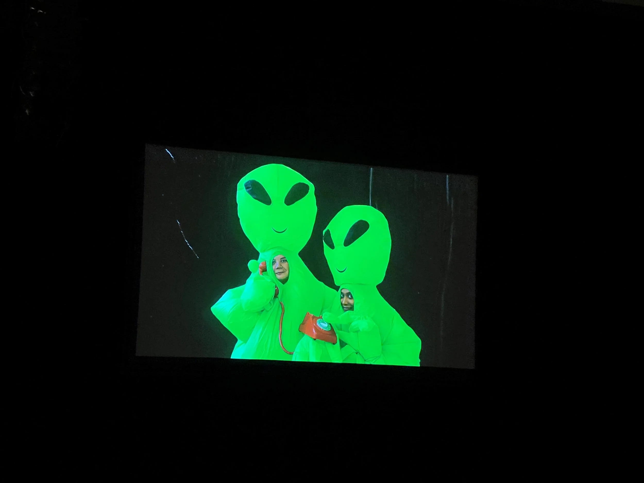 Hannah Macguire (left) and Suruthi Bala (right) dressed as aliens for the finale of the show.
