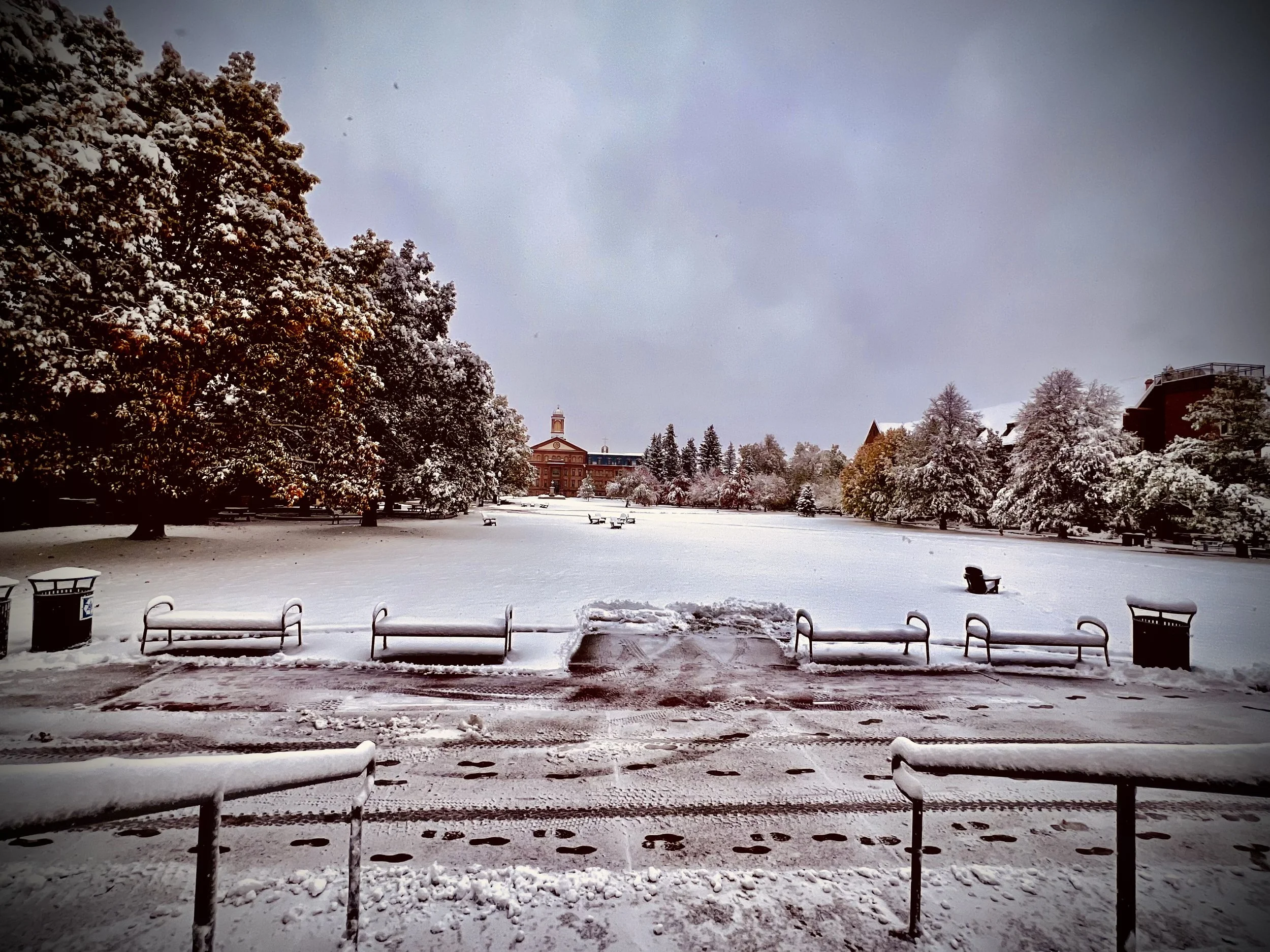 On Wednesday, November 6th, 2024, Regis University experienced its first snow of the year. It was complete with a powdery coat and a chill in the air. This weather signals the upcoming approach of winter with beauty and serenity.